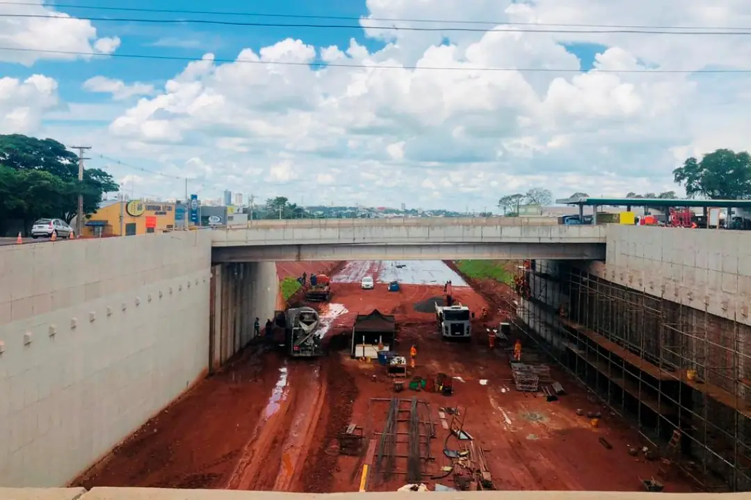 As obras de duplicação da PR-323 atingiram 80% de execução e devem ser entregues em maio. Os viadutos estão praticamente concluídos, restando apenas a pavimentação dos trechos das marginais e finalização de serviços complementares, como sinalização e paisagismo.