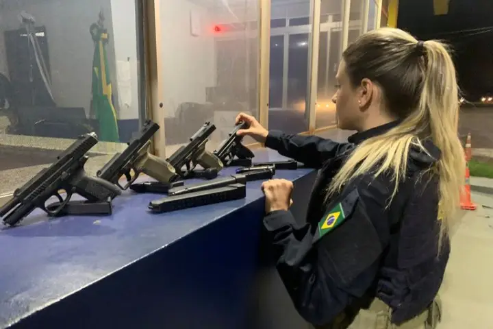 O volume incomum na região abdominal da passageira chamou atenção. Após a revista foram encontradas, junto a uma cinta abdominal, quatro pistolas de fabricação turca calibre 9mm, equipadas com dispositivos que alteram o funcionamento da arma para o regime automático, conhecidos como “kit rajada”; além de oito carregadores 9mm e dois carregadores alongados calibre .40.