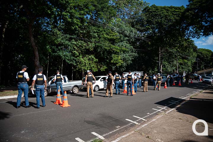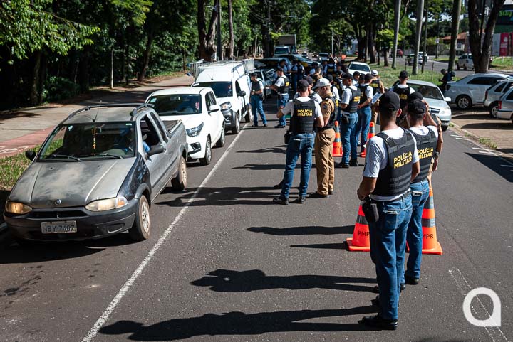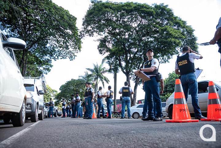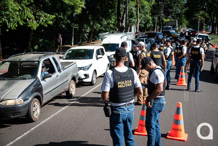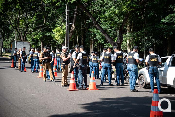 Uma blitz educativa foi realizada na tarde desta terça-feira (28) na avenida Governador Parigot de Souza, ao lado do Bosque dos Xetá, em Umuarama e contou com alunos do Curso de Formação de Praças da Polícia Militar do Paraná, alocados ao 25º Batalhão (BPM). O intuito foi simular uma situação de blitz real como parte do treinamento dos futuros militares, bem como conscientizar a população quanto às boas práticas de trânsito.