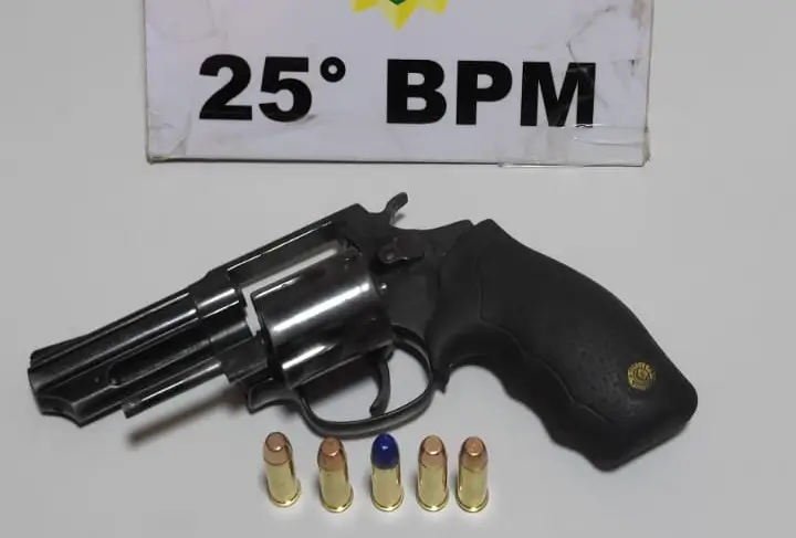 Foi dada voz de abordagem e feita a revista pessoal, porém, nada de ilícito foi encontrado com ele. Os policiais fizeram a busca no carro e acharam a arma no banco de trás do passageiro, debaixo do tapete.