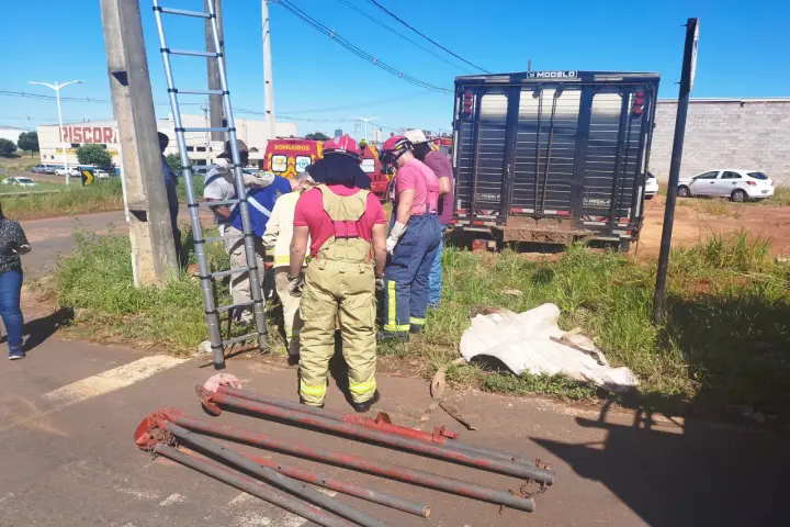Um cavalo que seria embarcado em um caminhão acabou caindo em um bueiro aberto na entrada da Estrada Jaborandi, em Umuarama, na manhã desta sexta-feira (31).
