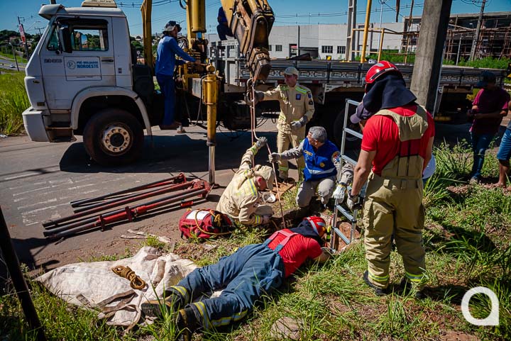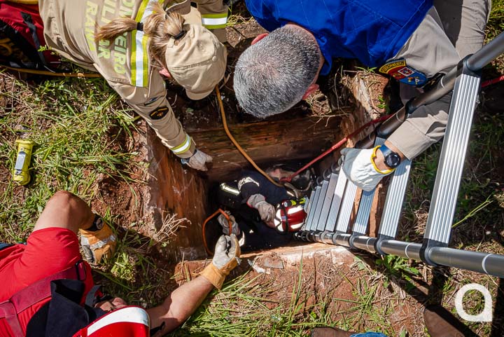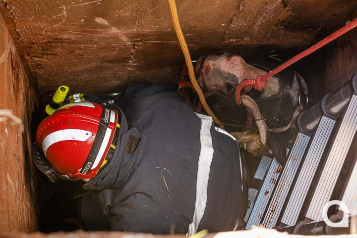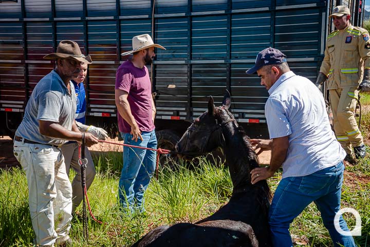Depois de instalar os equipamentos e com o auxílio de um caminhão munck, emprestado por um empresário, os bombeiros conseguiram fazer o resgate do cavalo que, aparentemente, não teve ferimentos.