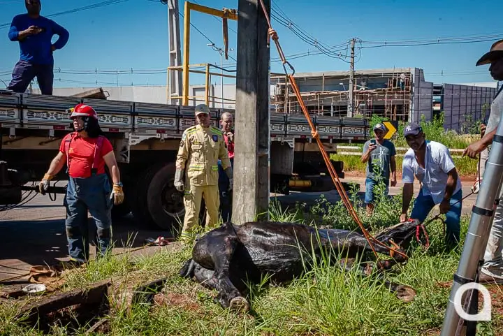 Equipes do Corpo de Bombeiros de Umuarama resgataram na manhã desta sexta-feira (31), um cavalo que havia caído em um bueiro aberto, na entrada da Estrada Jaborandi.