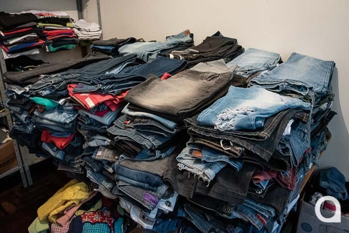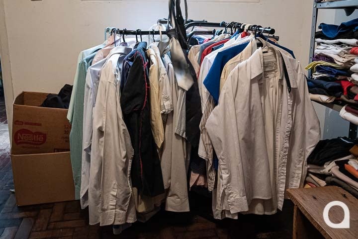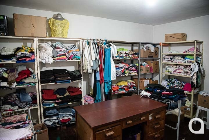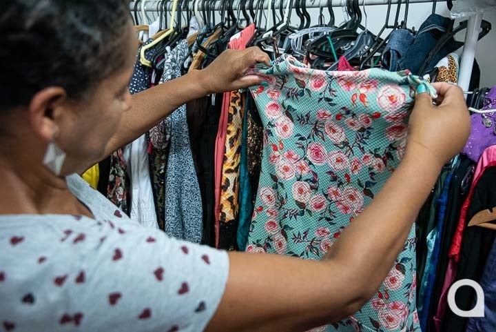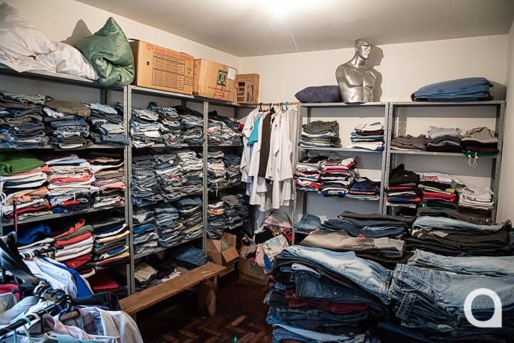 À venda estão roupas de vários tamanhos [adulto e infantil], unissex e de uma infinidade de modelos, algumas de marcas badaladas, além de calçados, acessórios e outros itens. Tudo doação da comunidade. O estoque enche prateleiras, mesas, caixas pelo chão… São mais de dez mil peças, aproximadamente, abarrotando os cômodos do bazar. OBemdito foi conferir.