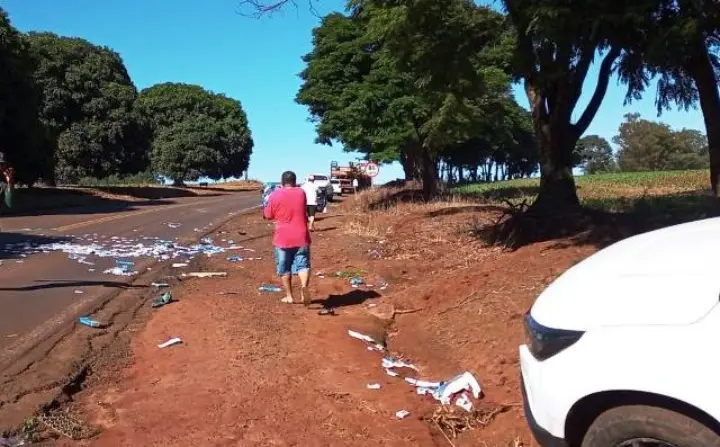 Pessoas chegaram a sair de Quarto Centenário para pegar o cigarro esparramado na rodovia.