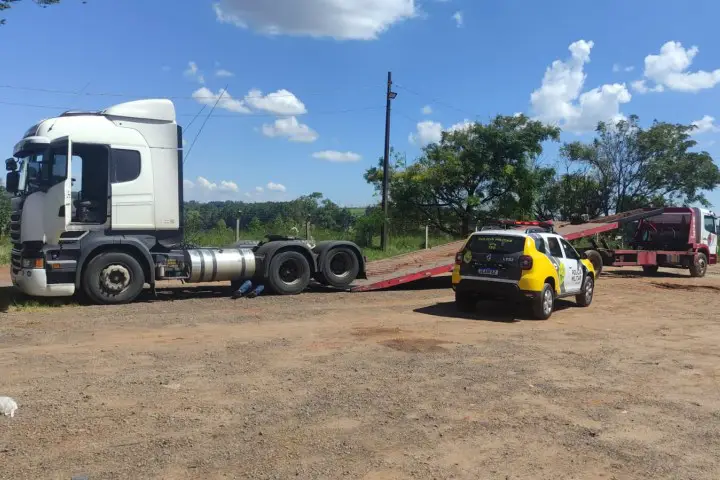 Policiais do 25º Batalhão de Polícia Militar (BPM) recuperaram, no início da tarde deste sábado (1º), um caminhão trator com alerta de furto/roubo no estado de Santa Catarina. O veículo estava em um posto de combustível às margens da PR-323, em Umuarama.