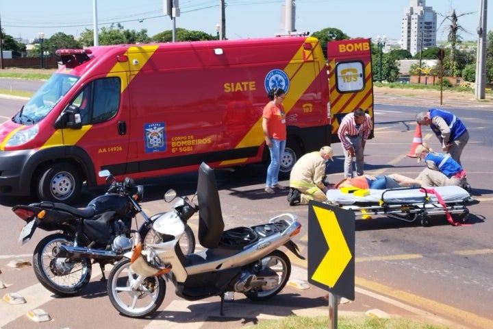 Motociclista fura sinal e provoca acidente no cruzamento das avenidas Portugal e Leonildo Stecca