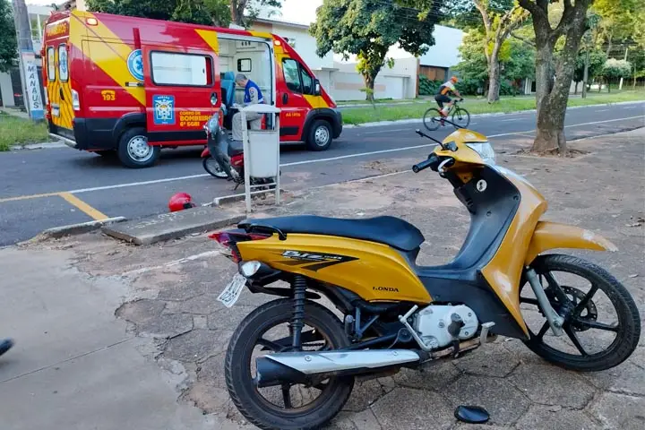 O adolescente estava a caminho do treino de futebol. Ele sofreu escoriações no joelho e o Corpo de Bombeiros prestou atendimento no local. O pai recusou encaminhamento para unidade hospitalar.