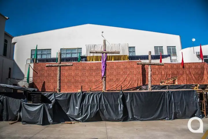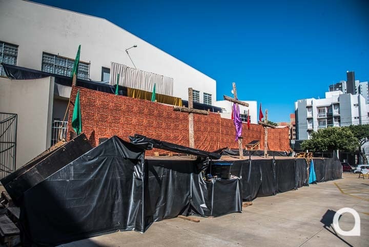 Os integrantes, que ensaiam desde fevereiro, devem acertar os último detalhes para o espetáculo que envolve 100 integrantes e será encenado em um palco montado no estacionamento da Matriz. Amanhã, quinta-feira (6), a organização fará apenas os últimos ajustes de som para a apresentação que é sempre um momento de muita emoção para os católicos.