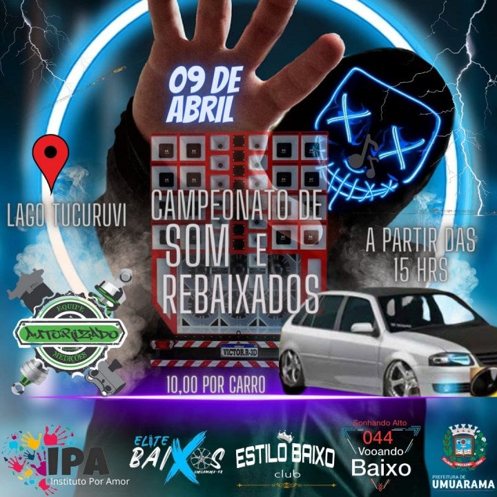 Neste domingo (9) o Lago Tucuruvi de Umuarama irá sediar um campeonato de som e automóveis rebaixados, com direito à premiação para o vencedor da disputa. O evento também estará arrecadando alimentos para composição de cestas básicas para famílias carentes moradoras do bairro Dom Pedro II e proximidades.