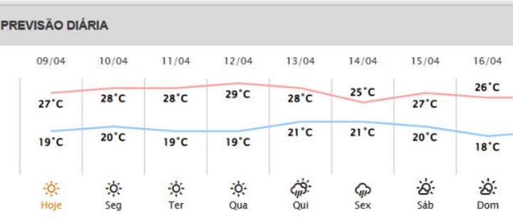 Para Umuarama previsão de dias ensolarados entre segunda (10) e quarta-feira (12). A temperatura oscila entre 19ºC e 29ºC nos próximos dias.