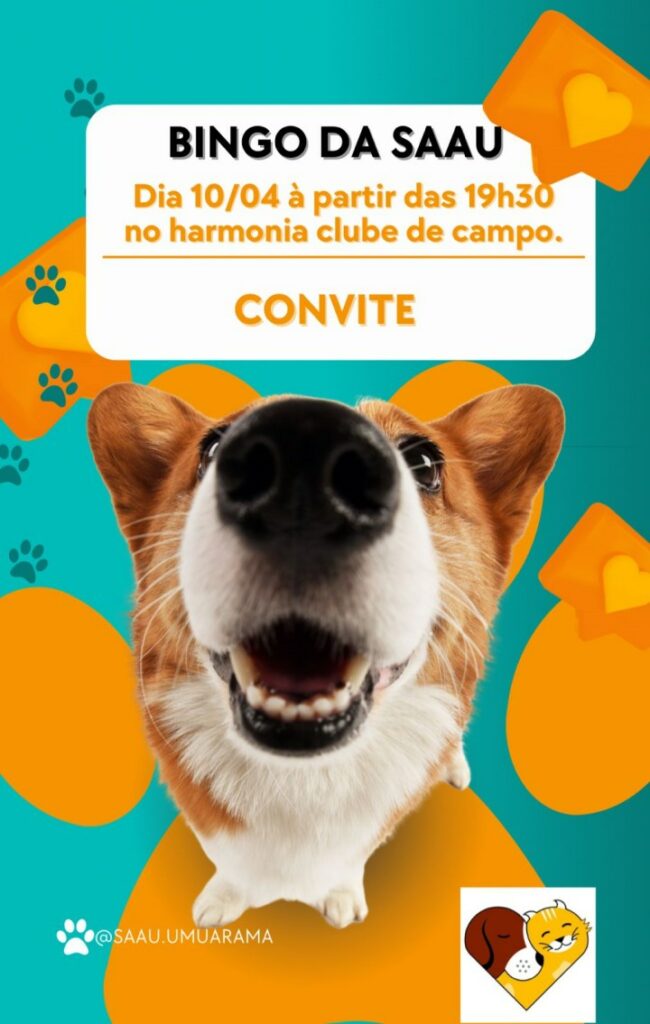 A Sociedade de Amparo aos Animais (Saau) realiza nesta segunda-feira (10) o seu tradicional bingo para arrecadar dinheiro para manutenção da entidade, que é responsável por cuidar de centenas de cães e gatos. O evento acontece às 19h30, no Harmonia Clube de Campo.