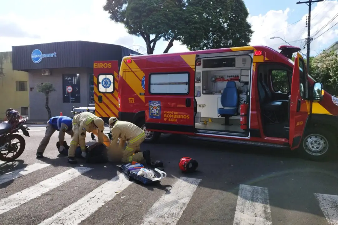 O homem de 36 anos trabalha como mototaxista e ficou ferido. Ele foi socorrido pela equipe do Corpo de Bombeiros e encaminhado ao Pronto Atendimento com escoriações consideradas leves.