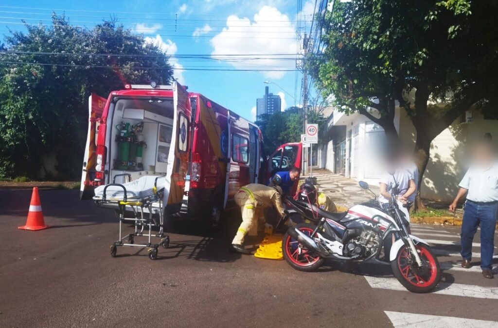 Uma colisão entre um carro e uma motocicleta resultou em ferimentos no motociclista na tarde desta terça-feira (11) em Umuarama. O acidente ocorreu por volta das 15h30 no cruzamento das ruas Aricanduva e Dr. Camargo, região central da cidade.