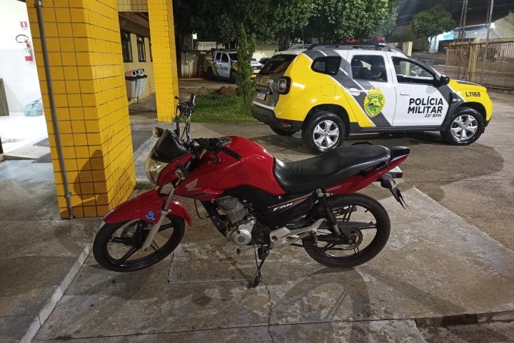 A Polícia Militar (PM) apreendeu a motocicleta de um condutor de 21 anos que estava transitando sem os retrovisores pelas ruas da Zona V de Umuarama, na noite desta quarta-feira (12). Com o rapaz os policiais também encontraram uma porção de maconha.