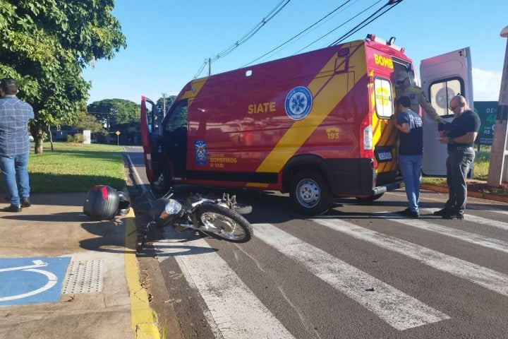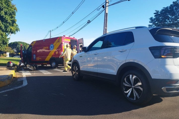 Motociclista tem suspeita de fratura em clavícula após colisão com automóvel em Umuarama