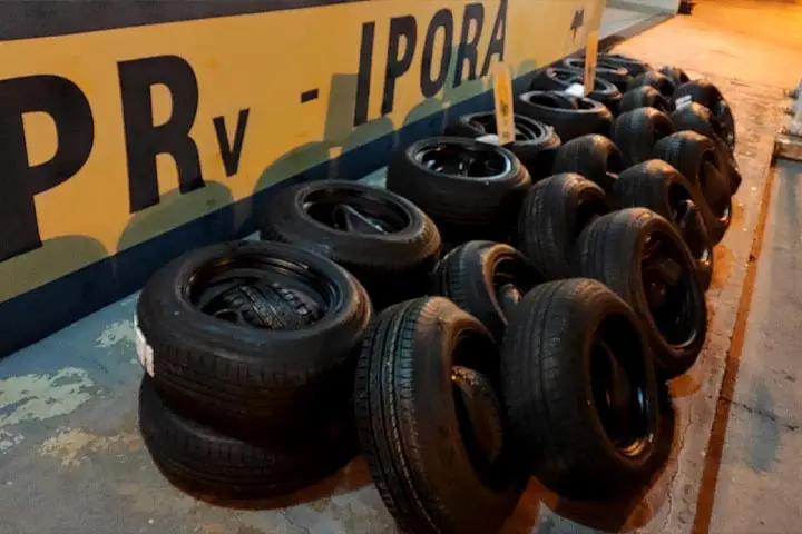 Após a conferência no posto policial rodoviário de Iporã, foi contabilizado 150 pneus, ou seja, 30 bobinas com 5 pneus cada de diversas marcas, modelos e medidas.