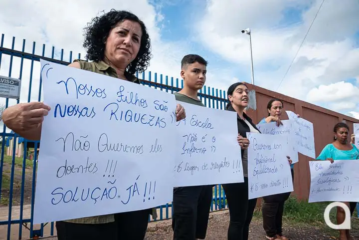 “Uma docente está maltratando as crianças com palavras de baixo calão. Não deixa as crianças irem ao banheiro e já teve relatos de alunos que chegaram a urinar na roupa dentro da sala de aula”, afirmou Ellen Regina Lima Bove, que é mãe de um estudante.