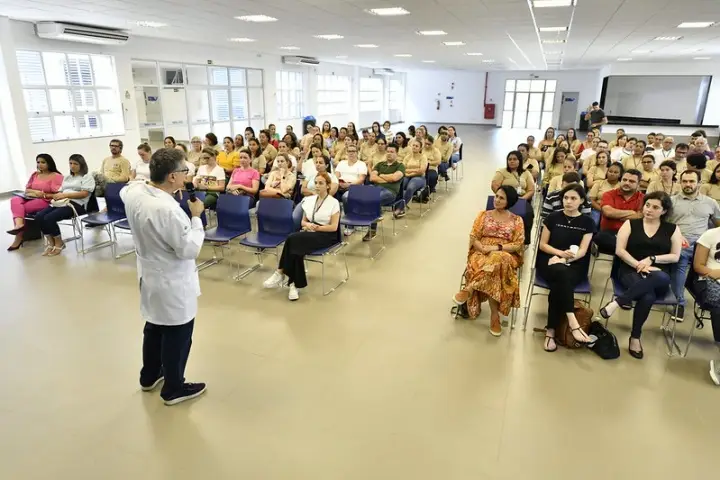 O infectologista Ricardo Delfini Perci realizou uma capacitação sobre os temas raiva e leishmaniose, em trabalho especialmente desenvolvido para agentes de endemias, técnicos da Vigilância Sanitária, enfermeiros da APS (Atenção Primária em Saúde) e do Pronto Atendimento (PA).