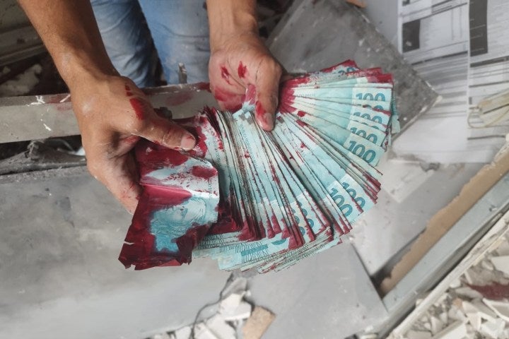 Os caixas eletrônicos modernos são equipados com um dispositivo que, em situações de explosão ou arrombamento manual, as cédulas comportadas dentro do equipamento são manchadas com uma tinta avermelhada ou rosa, que sinaliza que a cédula é advinda de furto. Uma vez manchadas, ela não tem mais valor comercial.