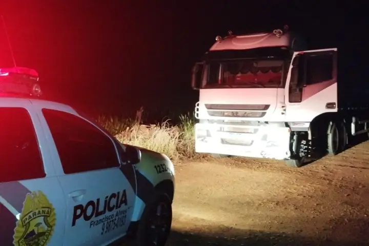O caminhão e o semirreboque recuperado na noite deste sábado (15), por policiais do 25º Batalhão de Polícia Militar de Umuarama, em Franscisco Alves, havia sido roubado no último dia 24 de março, após o motorista ter parado em um posto de combustível em Marmeleiro, no sudoeste do Paraná.
