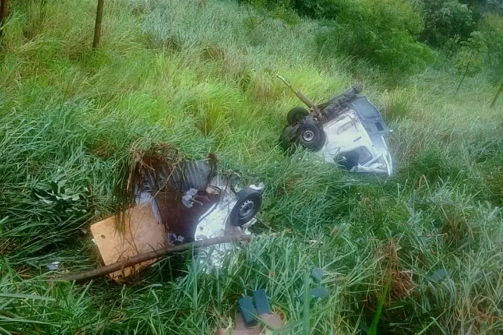 Com o impacto o furgão foi repartido em dois e foi parar às margens da rodovia. A parte dianteira da caminhonete também foi completamente destruída.