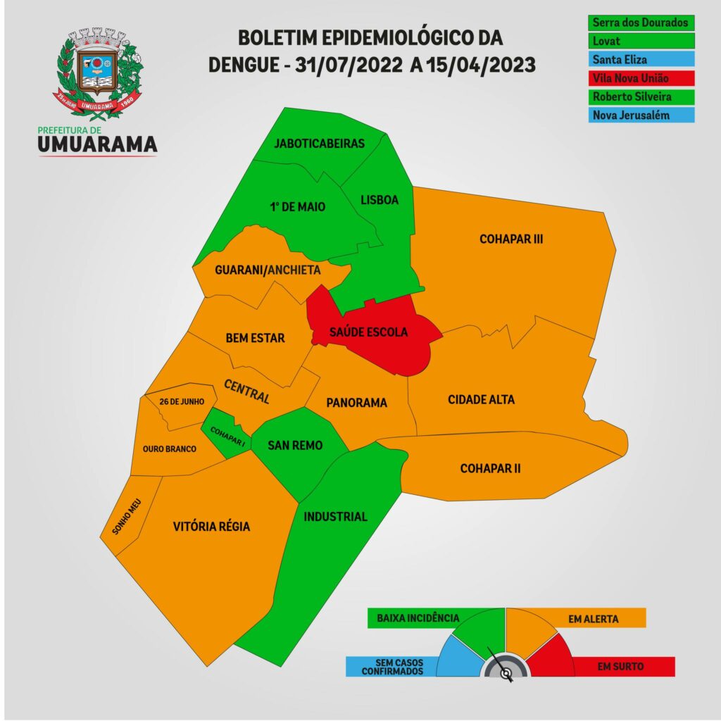 Na última semana Umuarama registrou 12 novos casos da doença, elevando para 164 o acumulado de positivos desde agosto do ano passado. Há ainda 253 suspeitas de dengue em investigação e 1.233 foram descartados, do total de 1.650 suspeitas registradas desde o início do período sazonal.