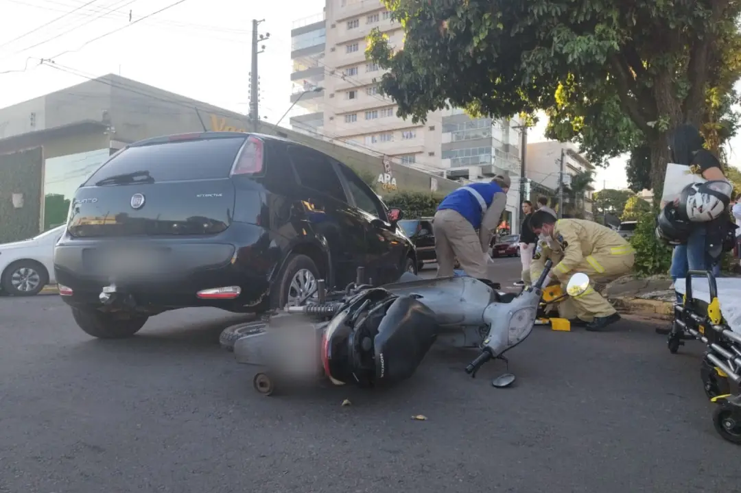 Uma colisão entre um carro e uma motoneta foi registrada por volta das 17h20 desta quarta-feira (19). O acidente ocorreu no cruzamento da avenida Getúlio Vargas e a rua Arapongas, Zona II.