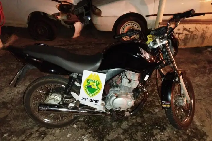 Uma motocicleta CG Titan 2011 foi recolhida por policiais do 25º Batalhão de Polícia Militar (BPM), na noite desta quinta-feira (20), após ser flagrada com o escapamento alterado e sem os retrovisores, em Francisco Alves, a 70 quilômetros de Umuarama