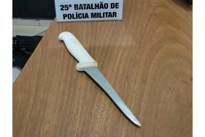 A Polícia Militar (PM) então iniciou buscas pelas imediações e, em posse das características do suspeito, conseguiram abordá-lo. Ele estava em posse de uma faca de desossa.