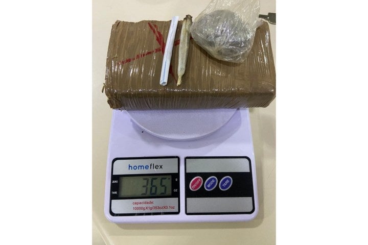 Com as características do suspeito, os policiais conseguiram abordá-lo nas proximidades. Com ele a equipe encontrou um tijolo de maconha e dois cigarros da droga que posteriormente totalizaram 365 gramas.
