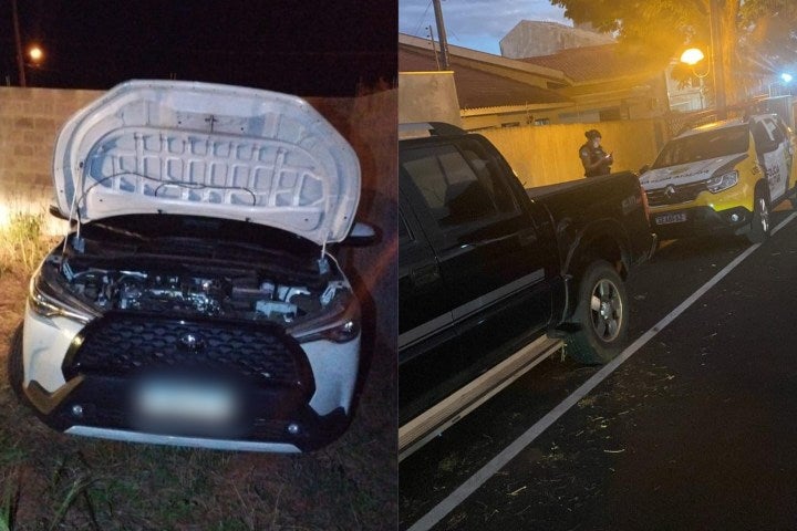 A primeira ocorrência aconteceu por volta das 18h28, na Zona I de Umuarama, após policiais do 25° BPM receberem a denúncia de que uma caminhonete GM S10 de cor preta estaria abandonada em via pública. Após uma checagem pela placa, foi confirmado que o veículo foi furtado no dia 17 de abril da área central da cidade.