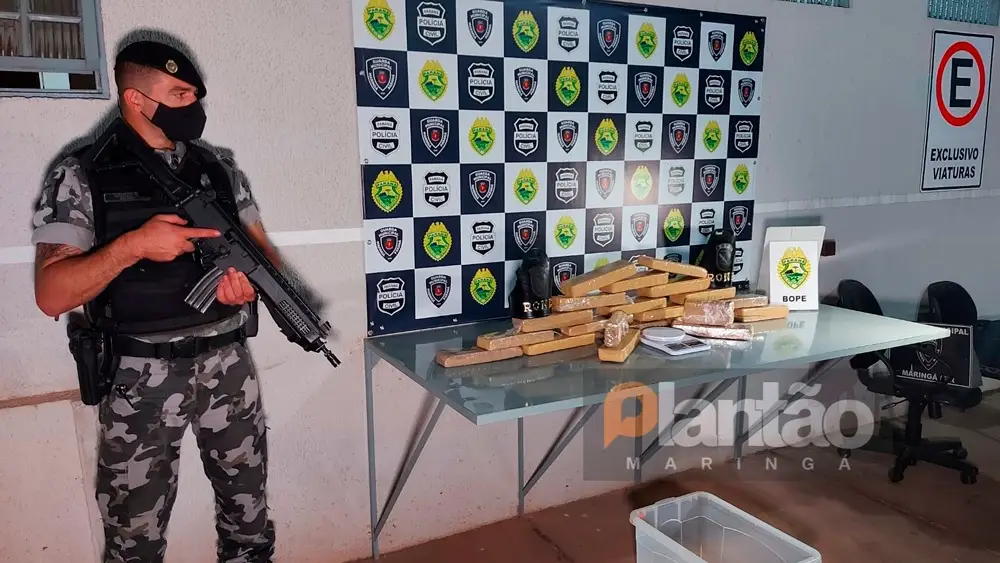 A Rone, da Polícia Militar (PM), apreendeu um carro e diversos tabletes de maconha durante a operação Pronta Resposta III, em Maringá. O caso foi encaminhado para a delegacia de Polícia Civil (PC).