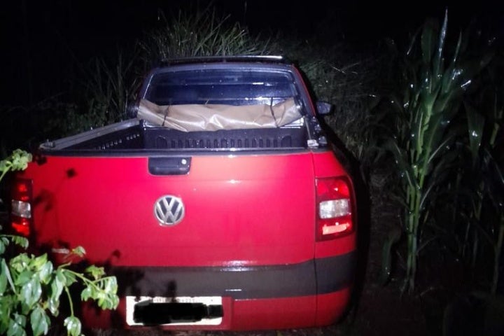 Na sequência roubaram o automóvel da família e fugiram do local com o apoio de outro veículo. As vítimas então conseguiram chamar a PM que iniciou diligências pela região até localizar o automóvel roubado abandonado em uma área rural.