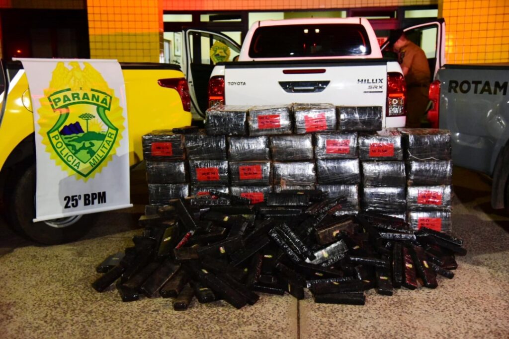 A maconha estava dividida em fardos grandes na carroceria da caminhonete e tabletes menores no interior do veículo. O adolescente disse que recebeu uma quantia para fazer o serviço (valor não divulgado pela PM). O menor informou aos policiais que pegou a Hilux já carregada com a droga em Guaíra.