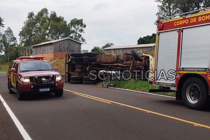 Um condutor de caminhão Ford Cargo com placas de Jesuítas ficou ferido após um tombamento que aconteceu na PR-467, no trecho entre a PR-323 e São Lourenço, na região de Cianorte, no início da tarde desta segunda-feira (8). Segundo informações, a vítima teve que ser socorrida pelo Corpo de Bombeiros e pelo helicóptero do Samu (Serviço de Atendimento Móvel de Urgência).