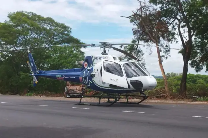 Após o atendimento inicial, ele foi encaminhado para o Hospital Santa Casa de Maringá pelo helicóptero do Samu.