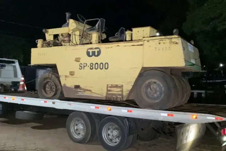Os bandidos furtaram três máquinas utilizadas para o serviço de pavimentação asfáltica. Além do rolo encontrado em Cascavel, outras duas máquinas também foram recuperadas.