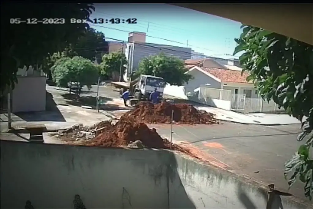 Câmeras de segurança de uma residência no cruzamento das ruas Montes Claros e Camboriú, no jardim Birigui, registraram o momento que um funcionário municipal da Prefeitura de Umuarama foi atropelado por um caminhão do município no momento em que estava trabalhando em obras no cruzamento. O acidente aconteceu no início da tarde desta sexta-feira (12) e deixou a vítima com o braço fraturado.