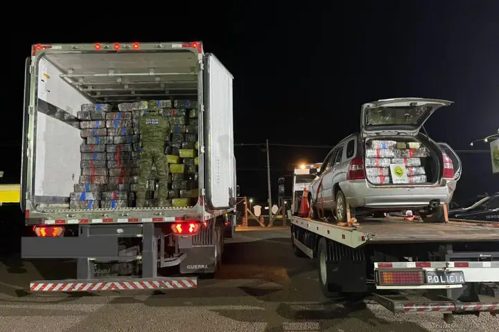 Durante a fiscalização no veículo, os policiais militares localizaram também um carro abandonado. A droga estava no interior de ambos, totalizando 2,6 toneladas.