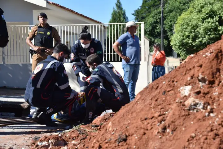 Um acidente de trabalho na tarde desta sexta-feira (12) deixou um servidor da Prefeitura de Umuarama com diversos ferimentos. Antônio Pinho Ferreira foi atropelado por um caminhão enquanto soldava uma grelha receptora de água da chuva no cruzamento das ruas Montes Claros e Camboriú, no jardim Birigui.
