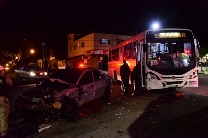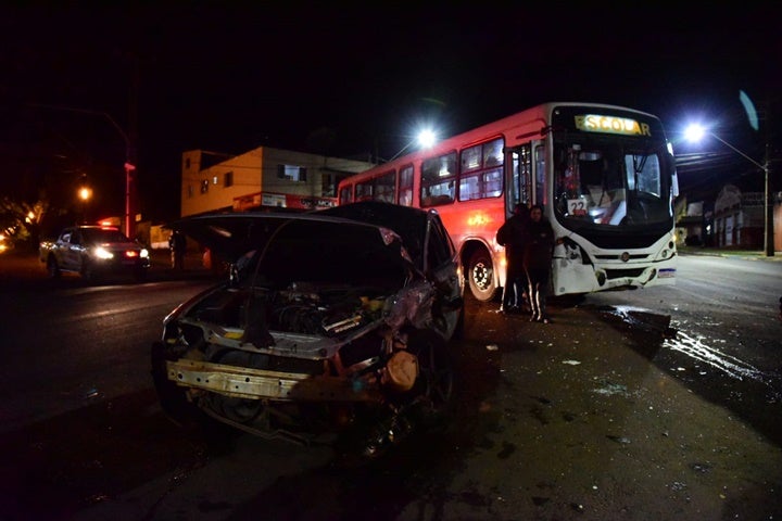 “Não deu tempo de segurar”, afirmou o motorista do coletivo. “Eu meti o pé no freio do ônibus, ele bateu o bico do carro lá [na frente do ônibus], no que ele bateu o ônibus rodou, o carro dele rodou e jogou o carro pra lá”, explicou.