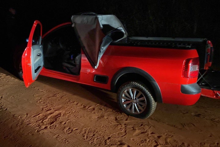 Durante as buscas na zona rural, os policiais acabaram perdendo contato com o Civic, porém encontraram a caminhonete VW Saveiro 2014 de cor vermelha que, após uma checagem de placa, foi confirmada como uma que havia sido roubada de Colombo no dia 23 de março deste ano.