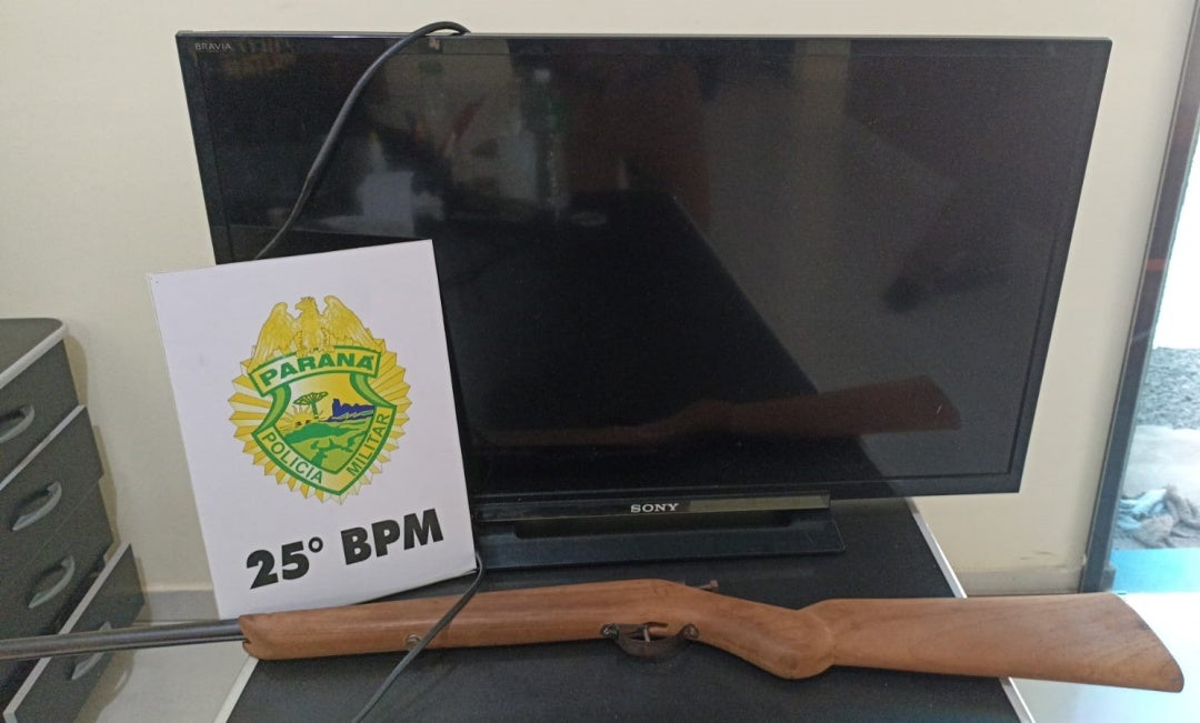 Nas buscas a equipe encontrou debaixo da cama a espingarda. Além disso, foi apreendida uma televisão de 32 polegadas da marca Sony que estava enrolada em uma coberta. Os objetos foram encaminhados para a delegacia de Altônia.