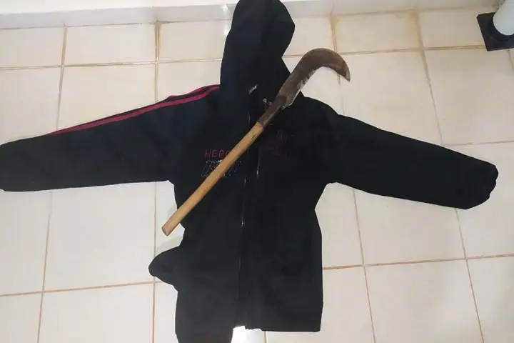 Após a coleta de dados e informações da vítima no hospital, a equipe foi até o local da ocorrência e constatou a veracidade da situação. Em buscas pela região, a PM encontrou a foice e um casaco utilizados pelo agressor em um pátio de uma residência. O homem apontado como autor das agressões não foi localizado.