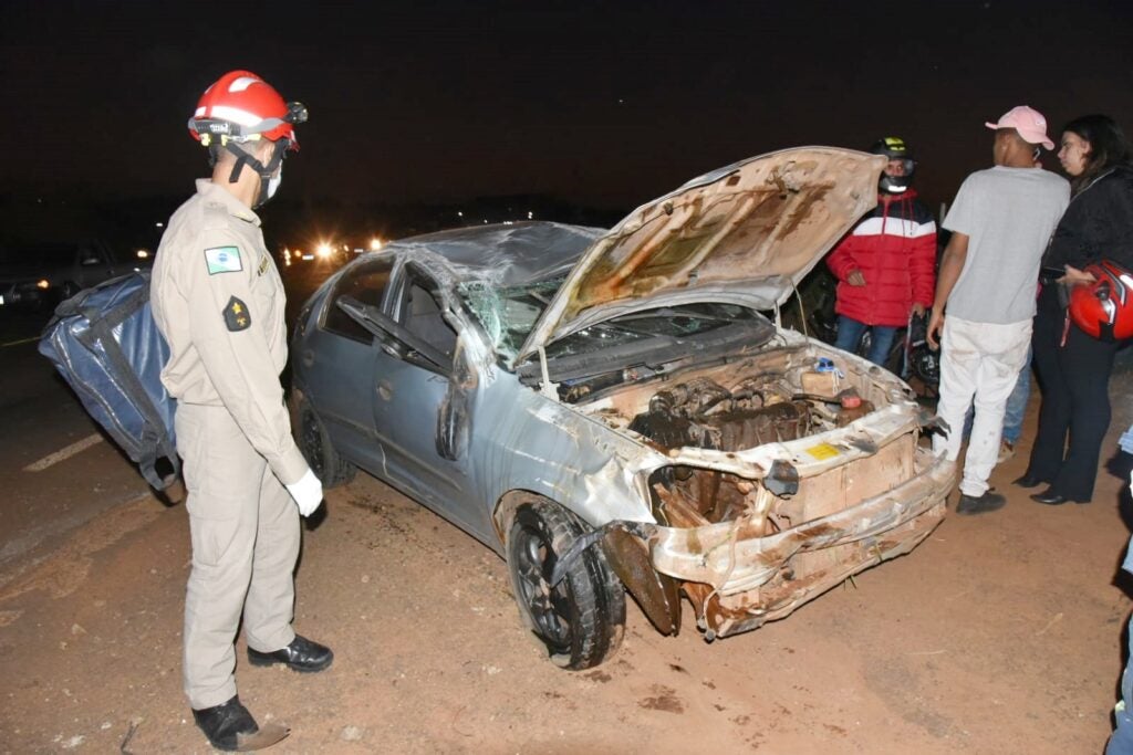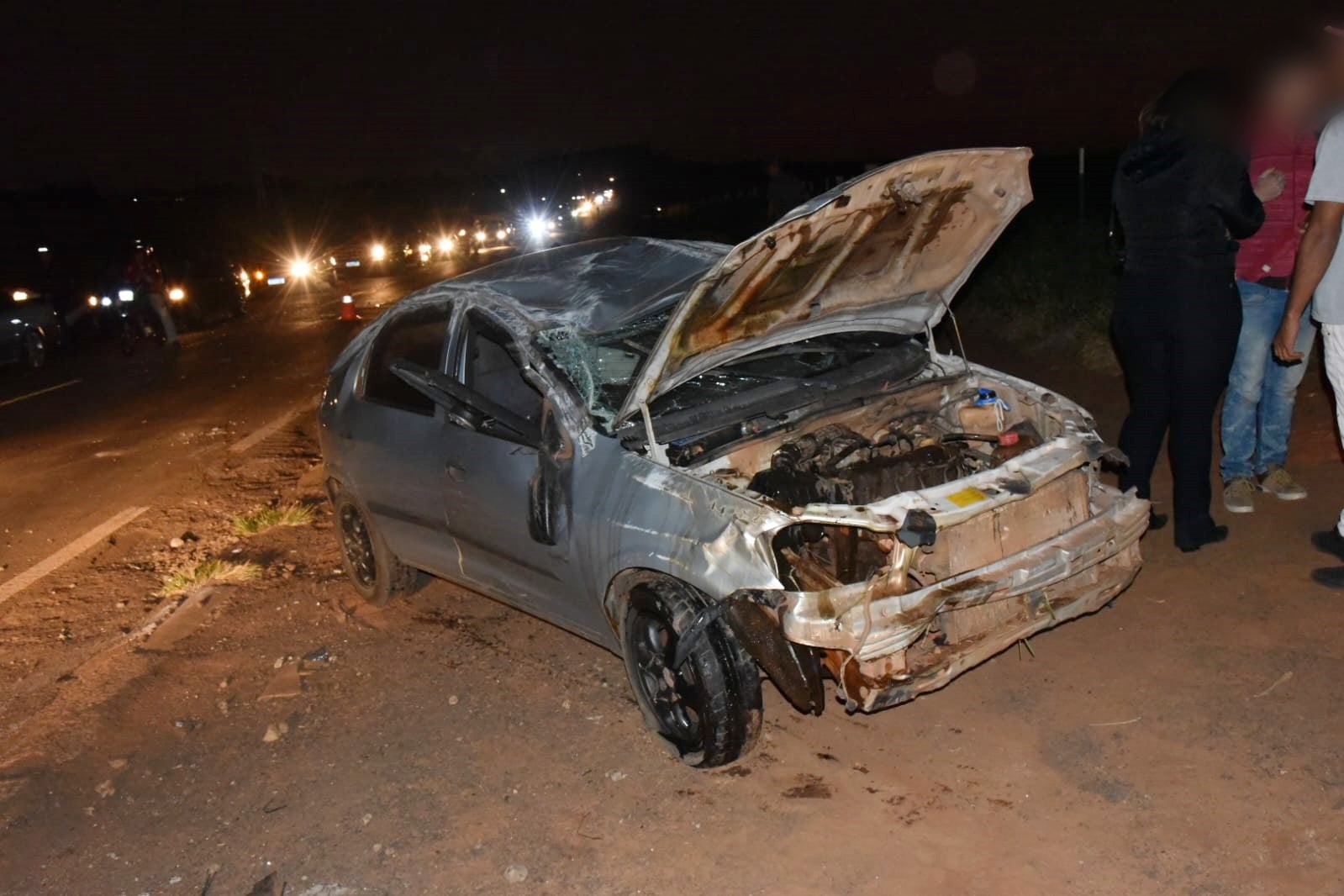 As equipes do Samu e Corpo de Bombeiros de Umuarama foram acionadas para prestar atendimento a uma vítima. A princípio havia informações de que o jovem de 23 anos que estava conduzindo um Celta de cor prata, que capotou, estaria ferido. Ele, no entanto, dispensou encaminhamento hospitalar e estava perambulando pelo local.