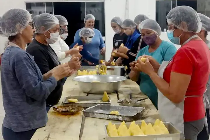 Os produtos usados são todos doados pela comunidade que se junta para arrecadar e viabilizar a festa. “Nosso distrito tem uma união muito grande, temos a ajuda de muitas pessoas que doam e que são voluntárias, ou seja, não recebem nada para ajudar na produção das coxinhas ou com a venda no dia da festa”, explica.
