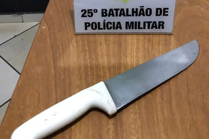 A ocorrência foi atendida pela Polícia Militar (PM) por volta da 01h30 desta quinta-feira (18), após uma solicitação da moradora. No local, eles encontraram o homem sentado do lado de fora da casa e, ao seu lado, uma faca de cozinha em cima da mesa.