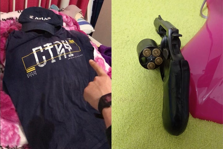 Durante as buscas foi encontrado um revólver calibre .38, com quatro munições intactas e três deflagradas. Também foram apreendidas as roupas utilizadas pelo suspeito no dia do crime. Na residência ainda foi localizado o veículo usado na ação criminosa, um Ford Escort antigo, cor dourada.