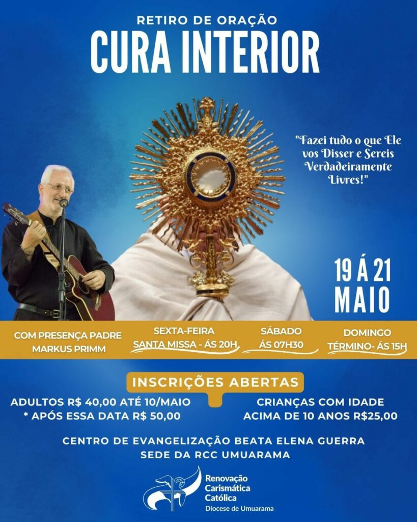 A Renovação Carismática Católica (RCC) da Diocese de Umuarama convida a todos para viver a experiência do Retiro de Oração por Cura Interior. O evento contará com a presença do Padre Markus Prim.